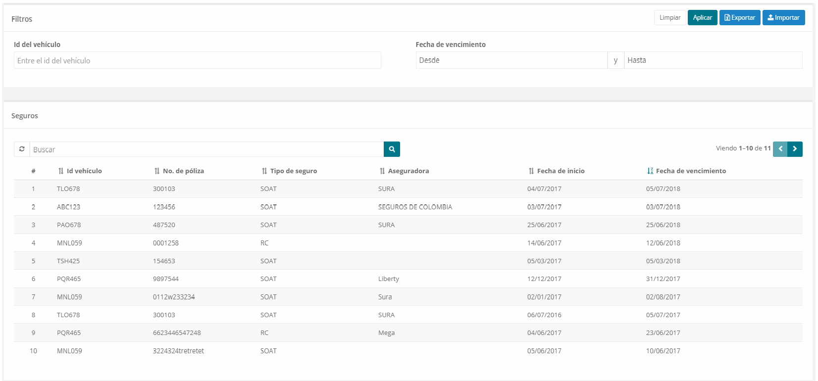 El usuaro con perfil Administrador del sistema, Asesor o coordinador, deberá ingresar a la opción Vehículos, que se encuentran en el menú principal, luego al ingresar a un vehículo existente podrá ingresar la información en la respectiva sección: Seguros, RTM, impuestos y/o Comparendos. Para registrar dicha información deberá proceder como se indican en el siguiente video: 7. ¿Cómo creo un