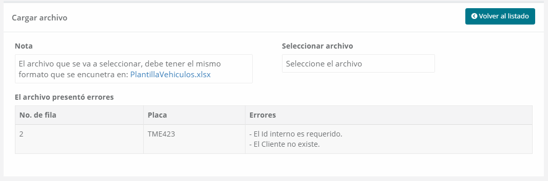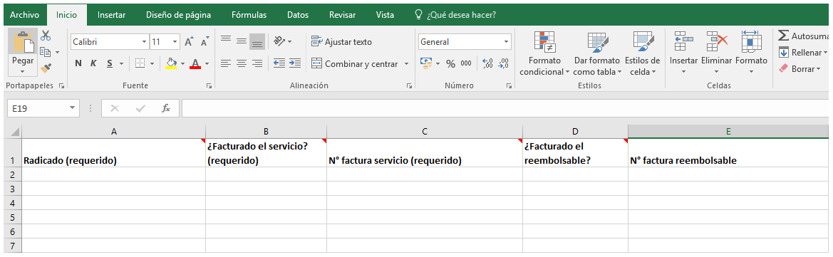 carga masiva, el sistema deberá diligenciar en la plantilla la